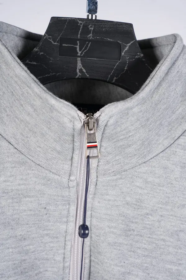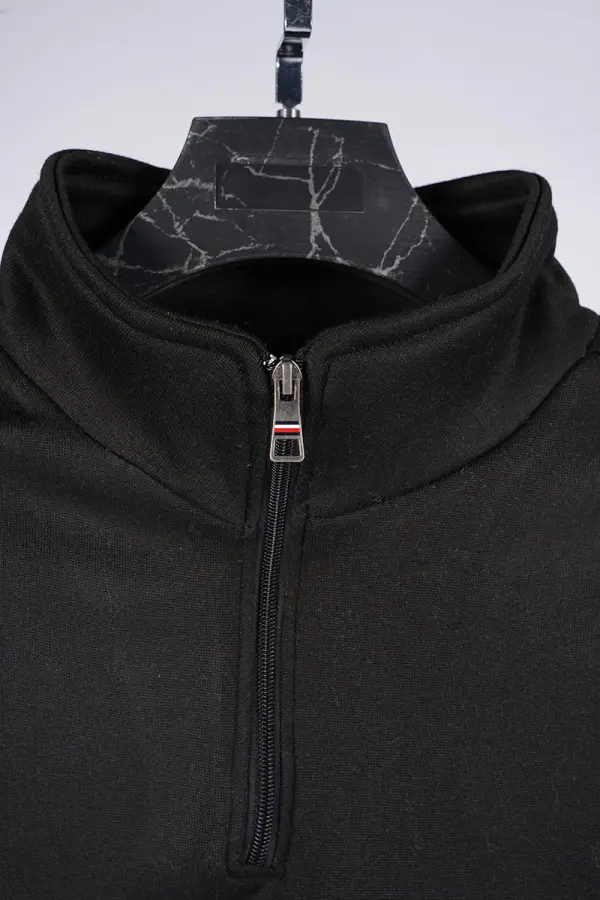 Le col montant avec zip ajoute une touche premium et permet une utilisation polyvalente : décontractée, sportive ou habillée.